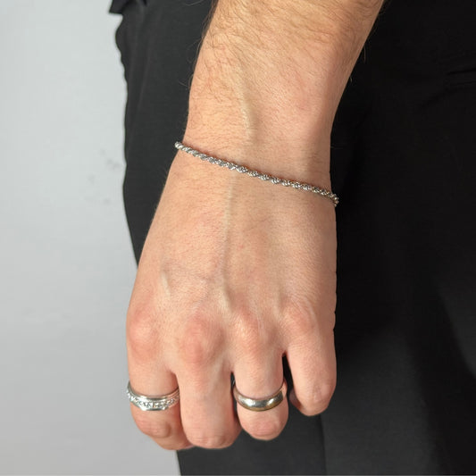 3mm Silver Cuban Link Bracelet Rhodium Plated