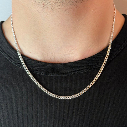 3mm Silver Cuban Link Chain & Bracelet Rhodium Plated