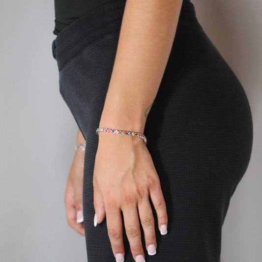 4mm Zircon Tennis Bracelet Multi Colour Rhodium Plated