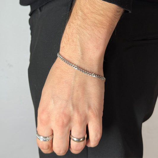 4mm Silver Cuban Bracelet Rhodium Plated