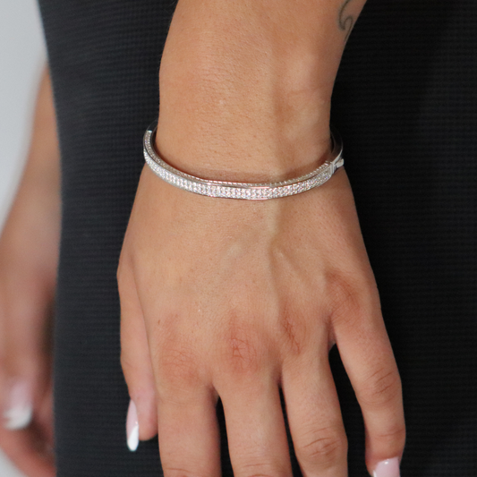 4.75mm Moissanite Double Row bangle Rhodium Plated