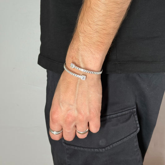 Moissanite Baguette Bangle Bracelet Rhodium Plated